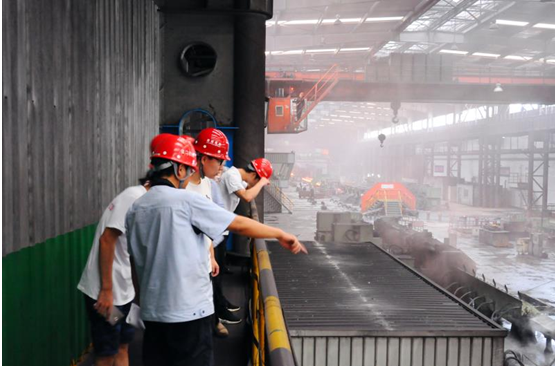 同學(xué)們?cè)谝贿厖⒂^,一邊通過師傅現(xiàn)場(chǎng)講解,才真正了解到軋鋼的工藝流程并且知道了鋼板到底是怎么形成的。赤紅而超高溫的鋼板在生產(chǎn)線上快速運(yùn)行,最后被切割成一段一段的,經(jīng)冷水冷卻后,這些基本板材,有的進(jìn)入軋機(jī)進(jìn)行軋制后做成鋼材卷板。當(dāng)天,在高溫又環(huán)境惡劣的再熱軋現(xiàn)場(chǎng)中,令人有種“蒸桑拿”的錯(cuò)覺。雖然大家早已汗流浹背,但即便如此,同學(xué)們?nèi)允潜3志瘢J(rèn)真聆聽?zhēng)煾档闹v解。當(dāng)大學(xué)生們親眼目睹一道道工序的順利進(jìn)行,直到鋼材一批批的成型,不由發(fā)出陣陣掌聲,既為工人師傅的精湛工藝和吃苦精神所感染,更深刻地體會(huì)到制造企業(yè)為社會(huì)主義生產(chǎn)力作出的貢獻(xiàn)。