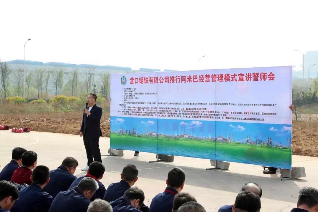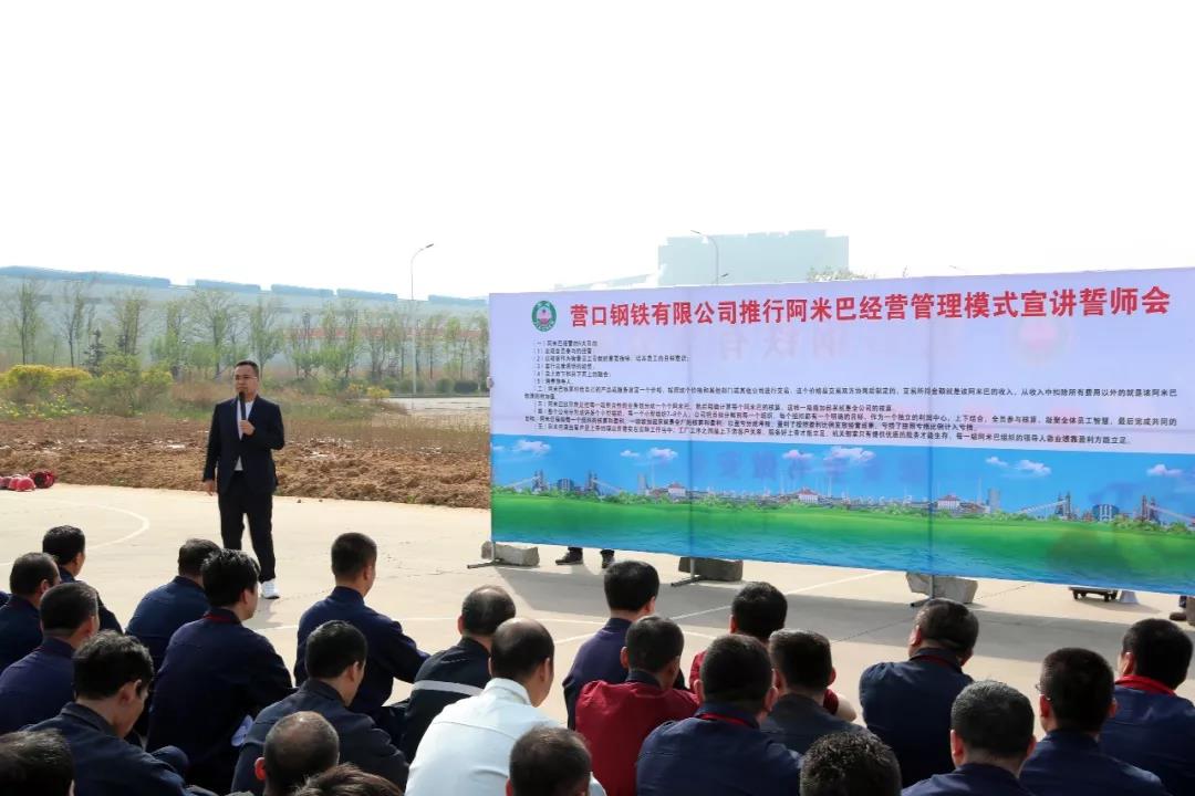 2019年5月3日下午,營鋼公司舉行推行阿米巴經(jīng)營管理模式宣講誓師大會,集團總裁孫朝英、集團副總經(jīng)理左文朝、營鋼公司副總經(jīng)理李朔等公司領(lǐng)導,及各廠廠長、各部門領(lǐng)導,阿米巴小組負責人等388人參加。