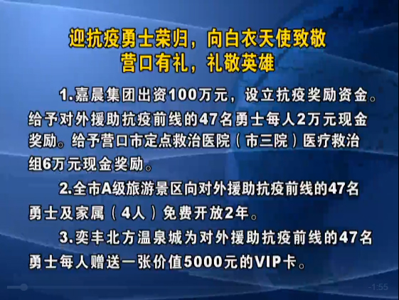 3月28日,營(yíng)口支援湖北醫(yī)療隊(duì)凱旋,回到家鄉(xiāng),營(yíng)口社會(huì)各界紛紛向抗疫英雄致敬,以營(yíng)口有禮的精神內(nèi)涵,禮遇抗疫英雄。